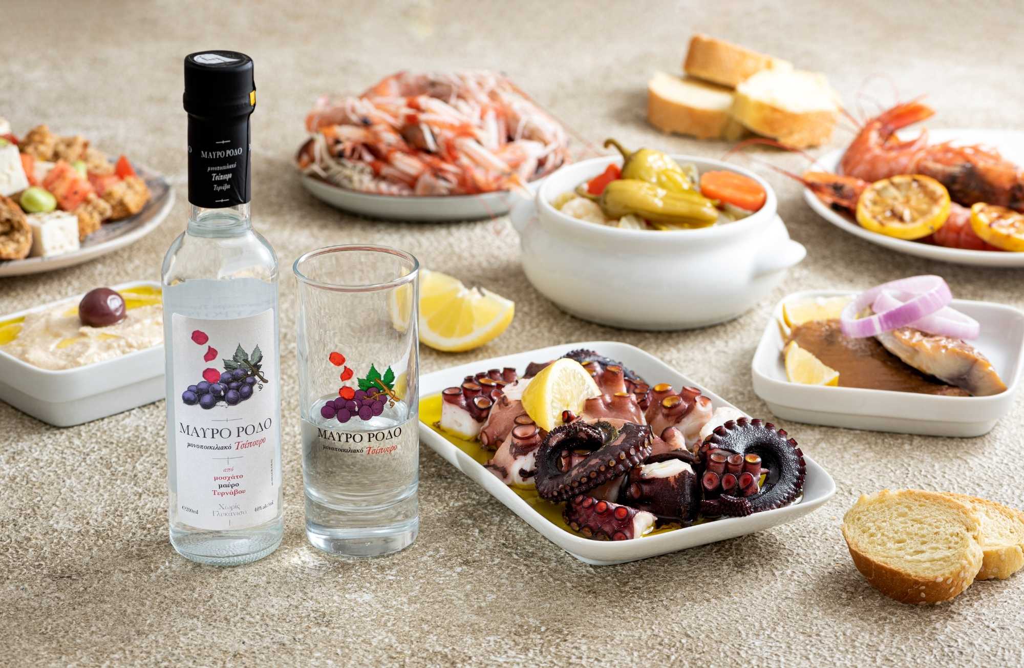 Η ποικιλία Μοσχάτο Αβούργου ή κατά πολλούς Μοσχάτο Μαύρο Τυρνάβου, είναι ένα κόκκινο σταφύλι με εκρηκτικά αρώματα. Το τσίπουρο ”Μαύρο Ρόδο” προέρχεται αποκλειστικά από την συγκεκριμένη ποικιλία και αποστάζεται σε μικρά καζάνια στην καρδία του Τυρνάβου.